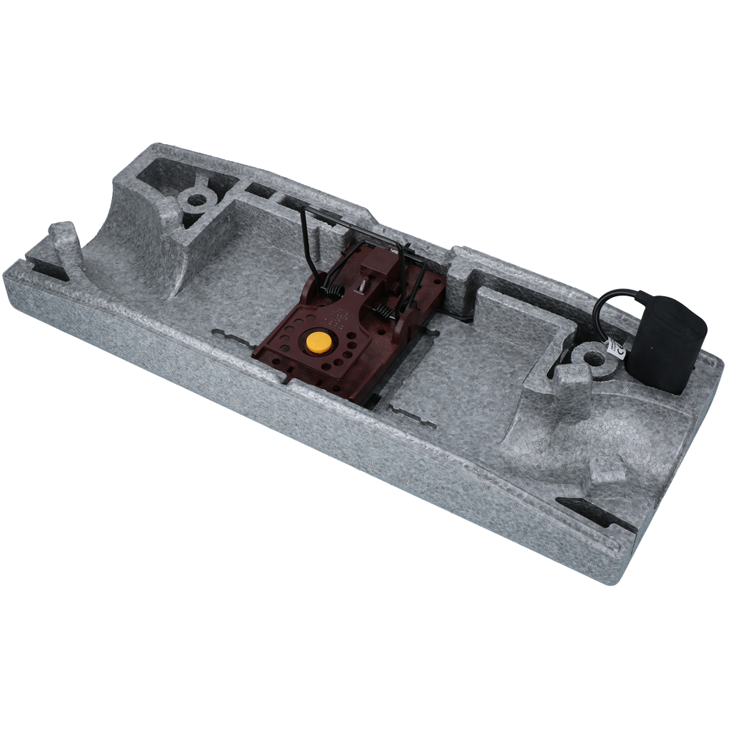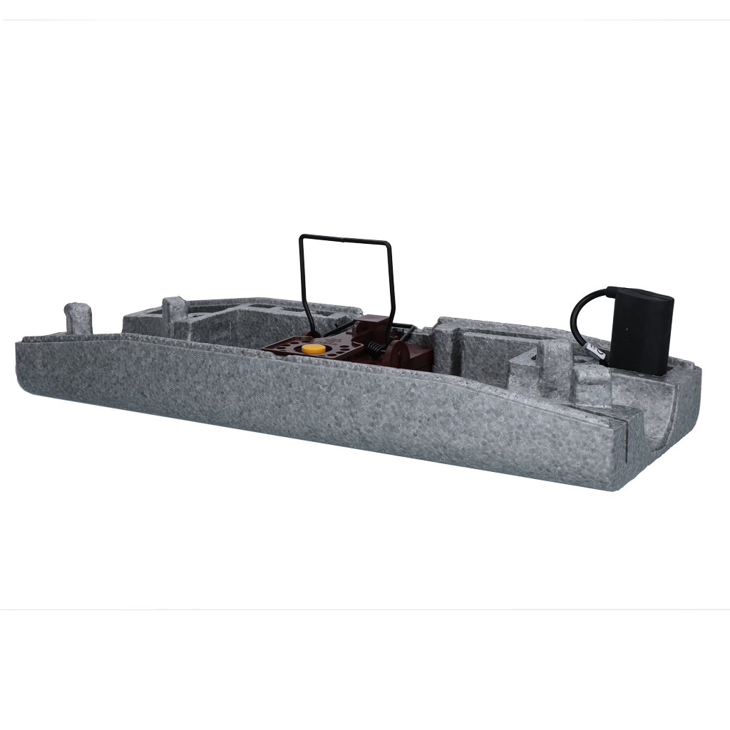 Robuuste voerdoos van EPP-materiaal voor Emitter TubeTrap, Emitter Direct 2.0 of mechanische rattenvallen. Geschikt voor binnen en buiten, met speciale vorm die muizen en ratten naar de val leidt.