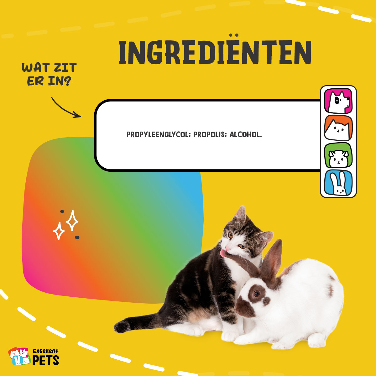 Excellent Pets Propolis Spray is een verzorgende spray voor honden, katten, konijnen en knaagdieren. De formule op basis van bijenpropolis ondersteunt het herstellend vermogen van de huid.